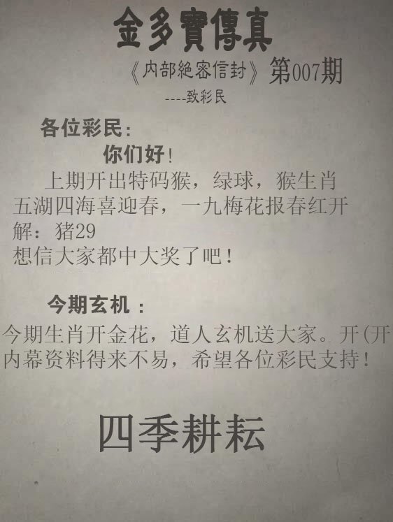 007期正版金多宝传真[图]
