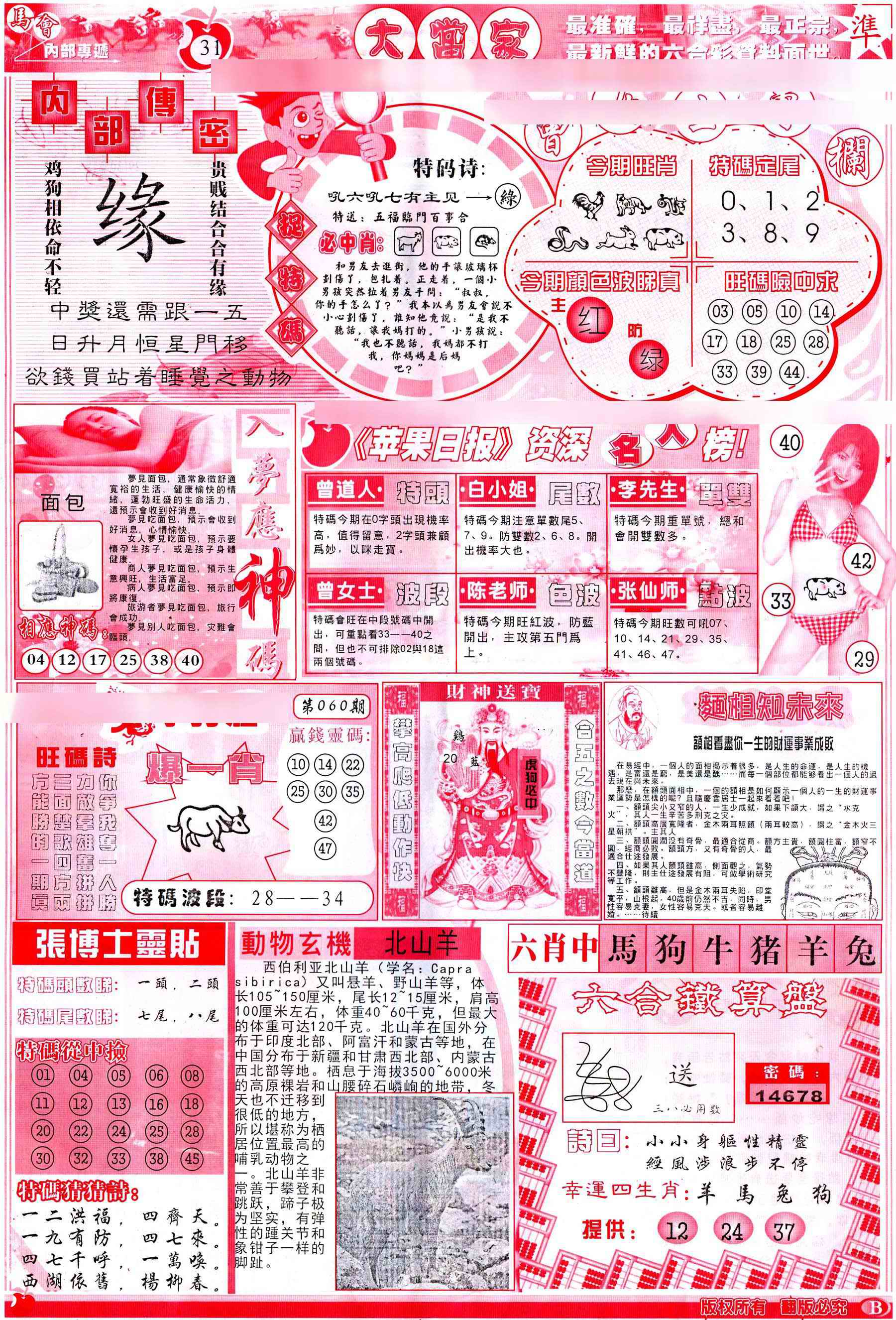 060期彩卷后庄B(保证香港版)[图]