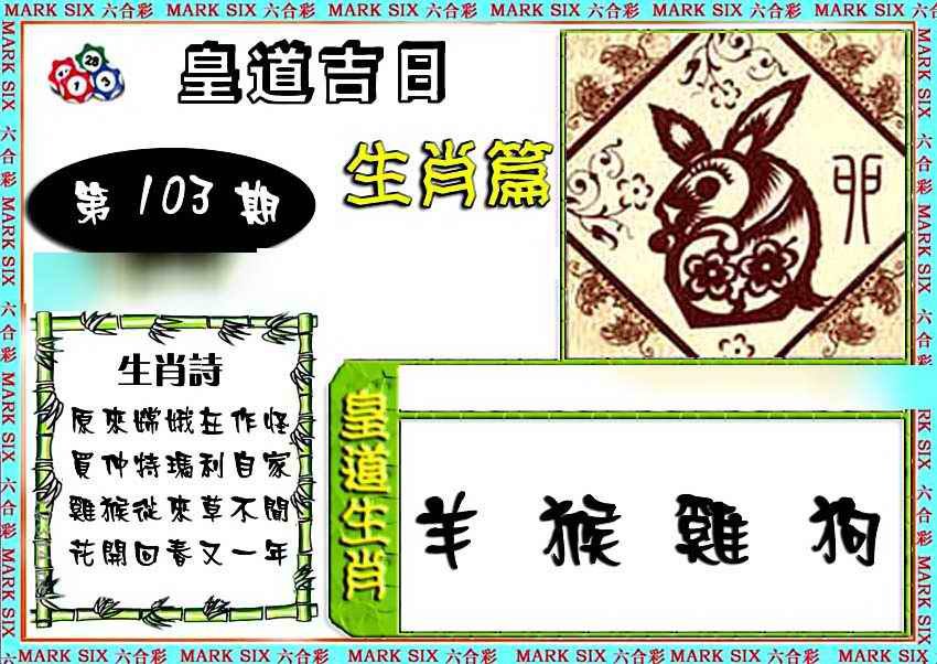 103期特码生肖预测[图]