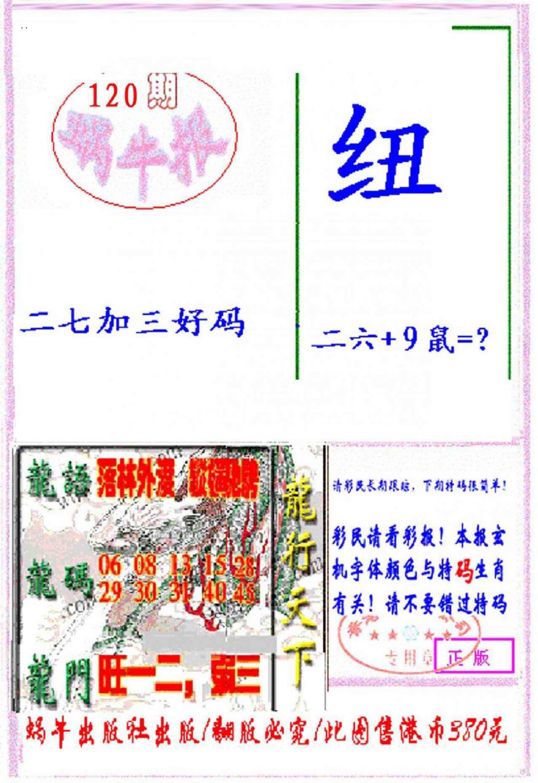 上一篇:120期九龙特新刊[图]