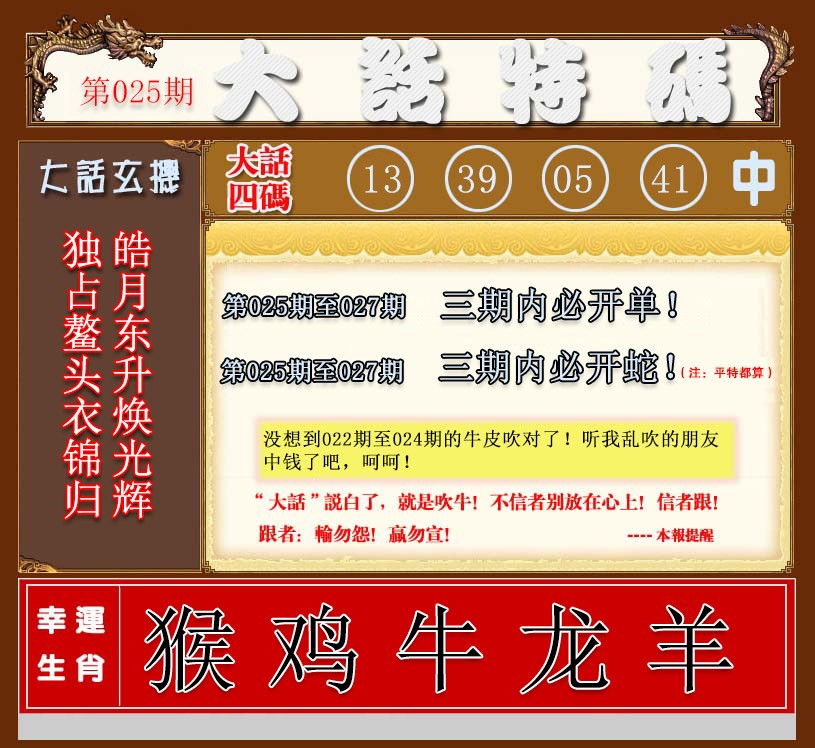 025期大话特码[图]