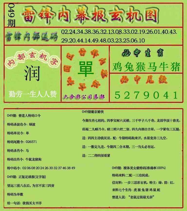 049期雷锋玄机报(新上市)[图]