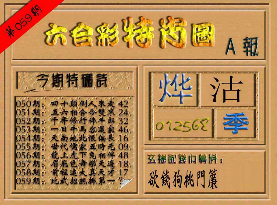 059期六合彩特肖图(A报)[图]