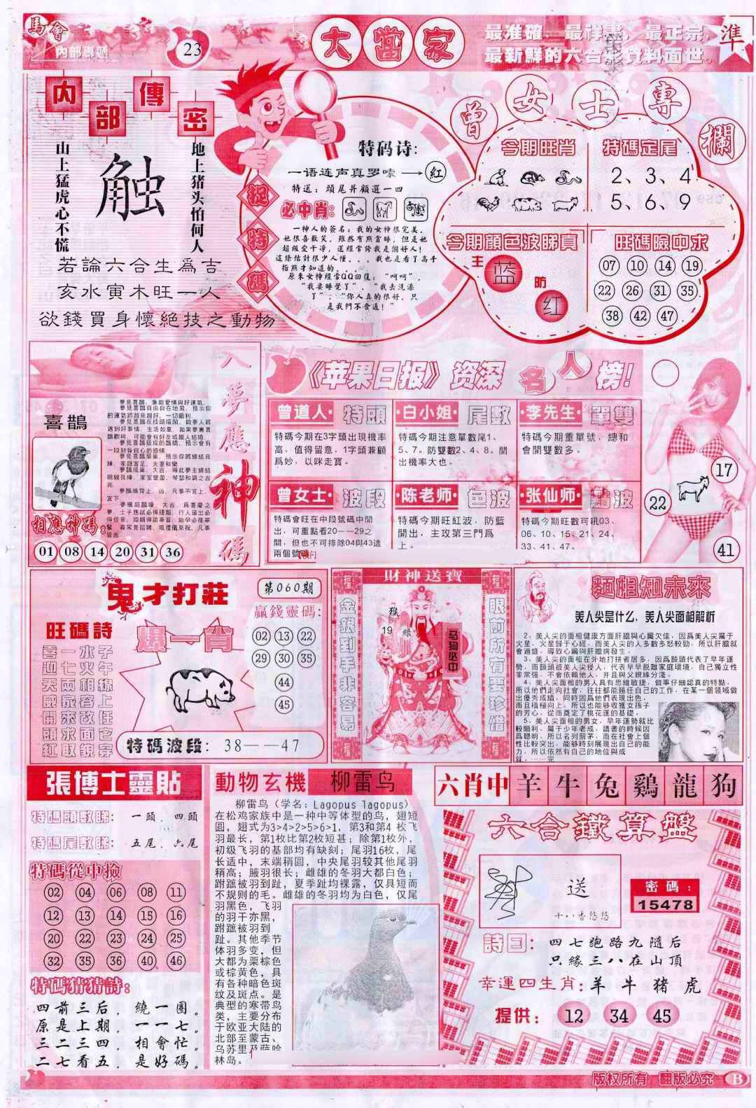 060期彩卷后庄B(保证香港版)[图]