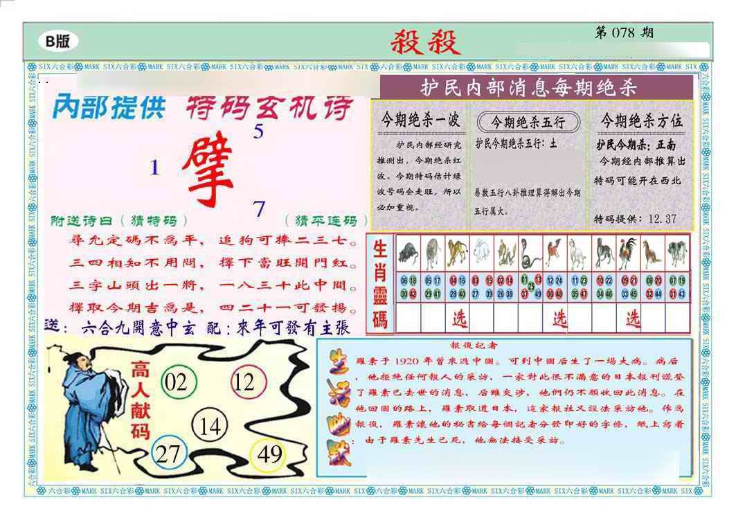 078期马经杀杀杀B(新图推荐)[图]