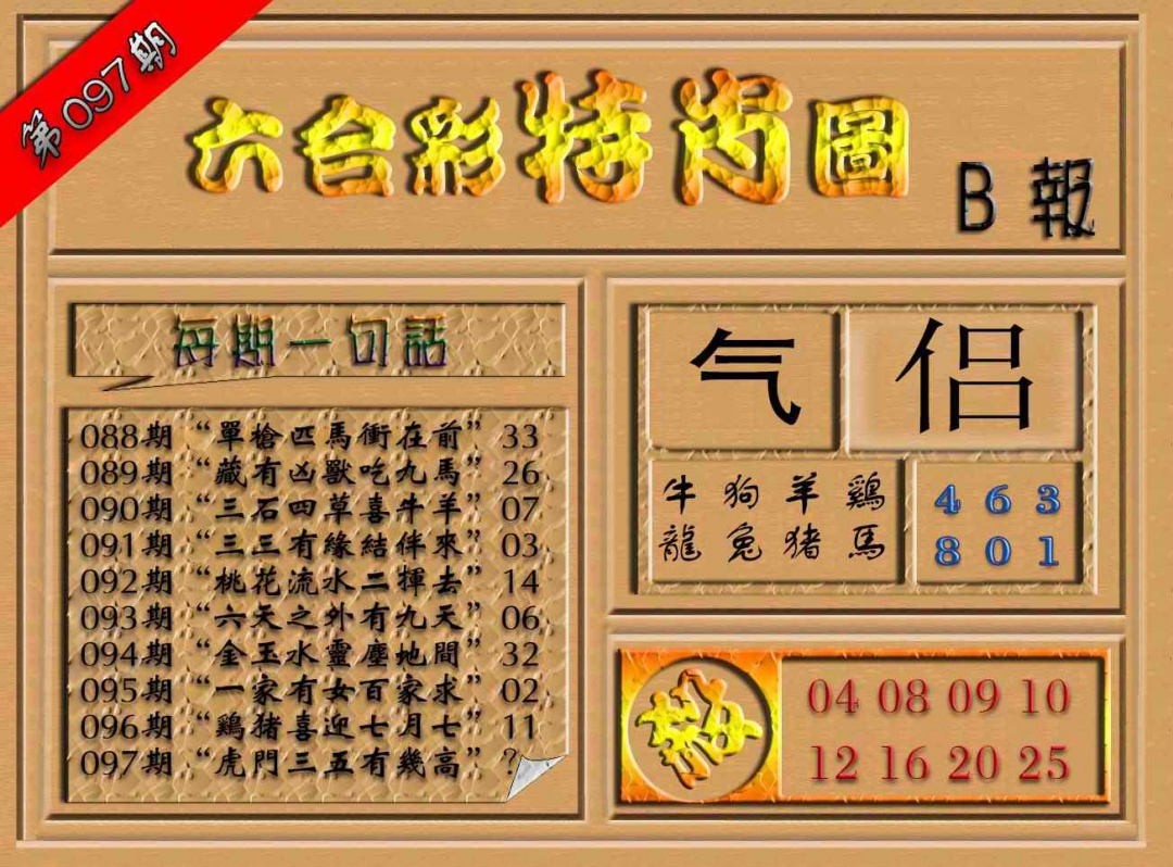 097期六合彩特肖图(B报)[图]