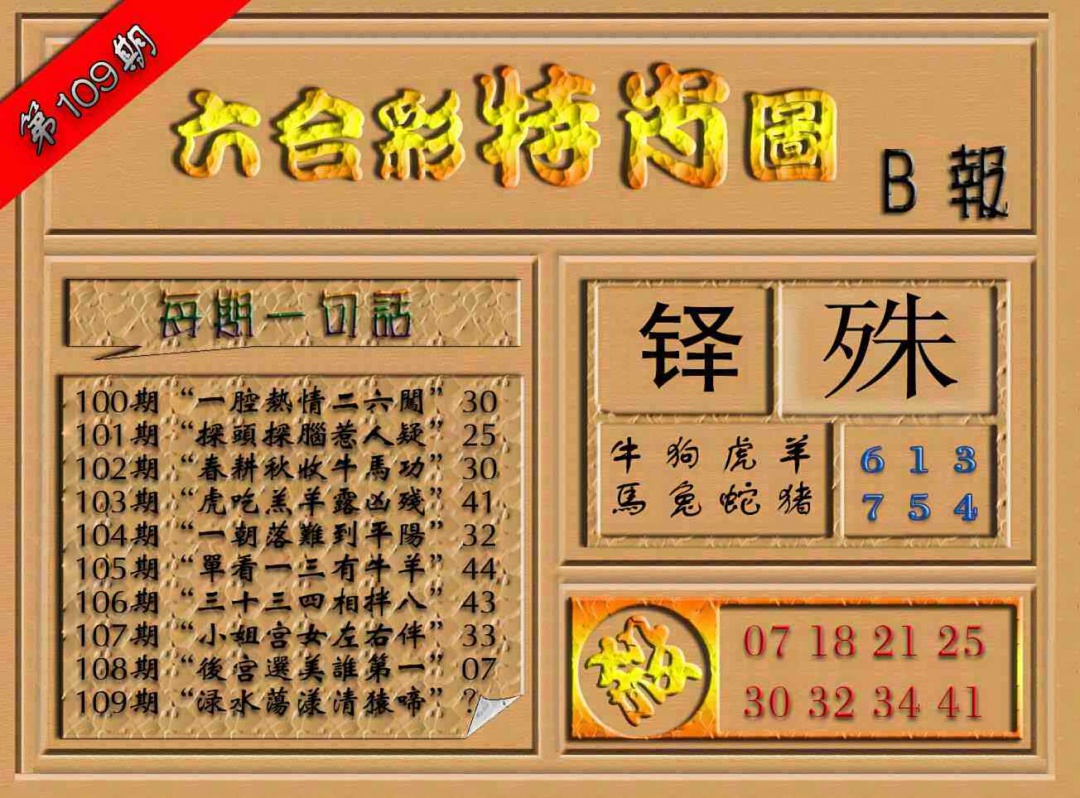 109期六合彩特肖图(B报)[图]