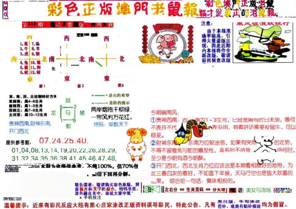 112期彩色正版澳门老鼠报[图]